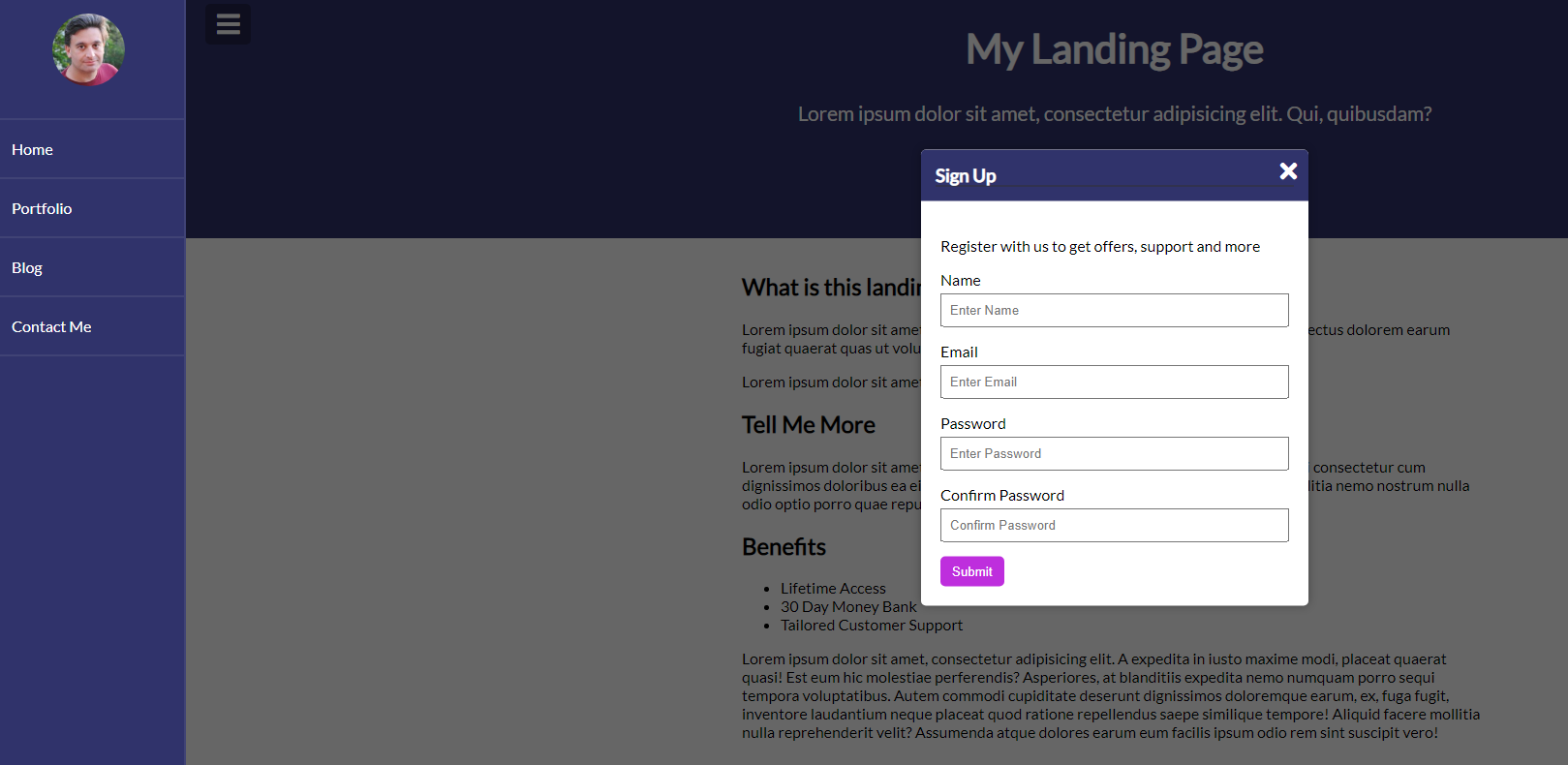 <input type="password" id="password2" placeholder="Confirm Password" class="form-input">