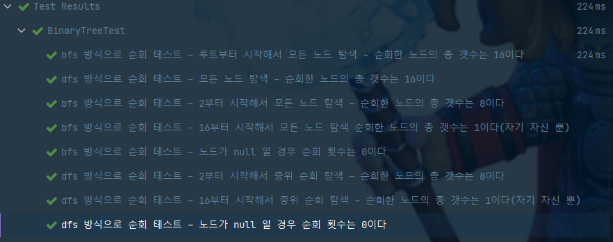 @DisplayName("bfs 방식으로 순회 테스트 - 루트부터 시작해서 모든 노드 탐색 - 순회한 노드의 총 갯수는 16이다")