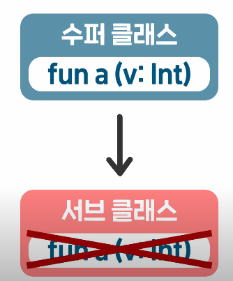 수퍼 클래스에 있는 함수와 같은 이름과 형태를 가진 함수는 서브 클래스에서 만들 수 없다
