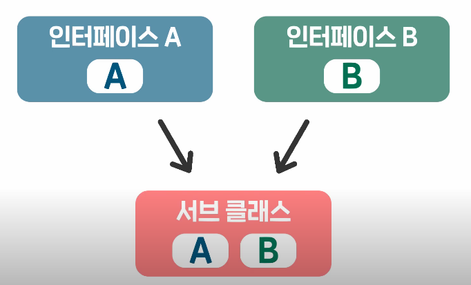 또한 한번의 여러 인터페이스를 상속받을 수 있으므로 좀 더 유연한 설계가 가능.