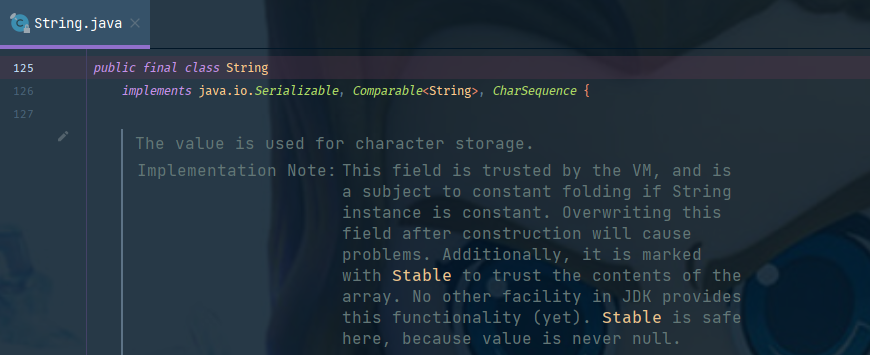 자바 표준 API의 String 클래스는 final 클래스의 대표적인 예시라고 볼 수 있다.
