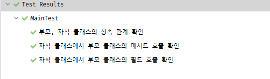 @DisplayName("부모, 자식 클래스의 상속 관계 확인")